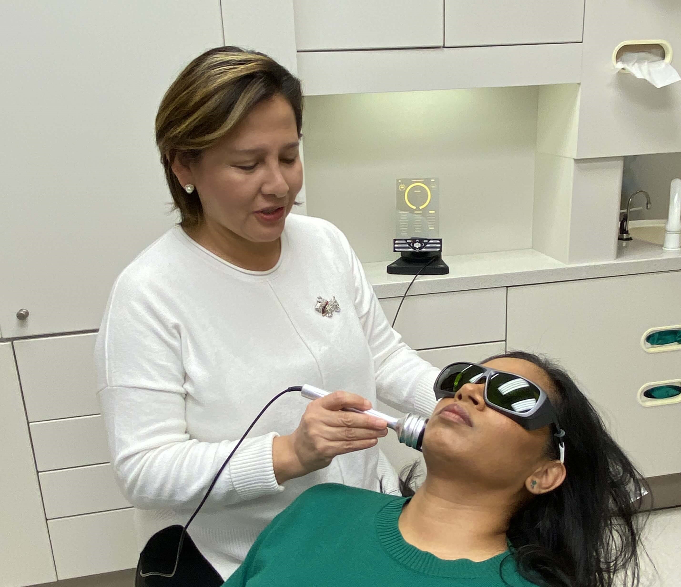 Laser therapy for TMD is a quick, noninvasive treatment that uses targeted light energy to reduce inflammation in the temporomandibular joint (TMJ). When patients come in for treatment at Orlando Advanced Dentists, Dr. Roach and her team will first assess their symptoms to determine the best course of action. During the procedure, the laser is gently applied to the affected area, where it penetrates deep into the tissue to promote healing and reduce pain. The treatment is generally painless and requires no downtime. Sessions are typically short, and patients can expect to see a reduction in pain and improved jaw function over time. Regular treatments may be recommended to maintain results, depending on the severity of the condition.